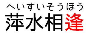 「萍」は水草のことで「根のない浮き草と流れつづける水とが出会う」こと、主に旅に出ている者どうしが偶然知り合いになることの例えです。