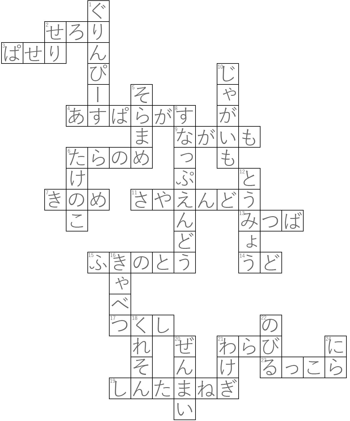 - ・1マスにつき、ひらがな1文字が入ります。