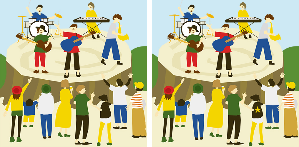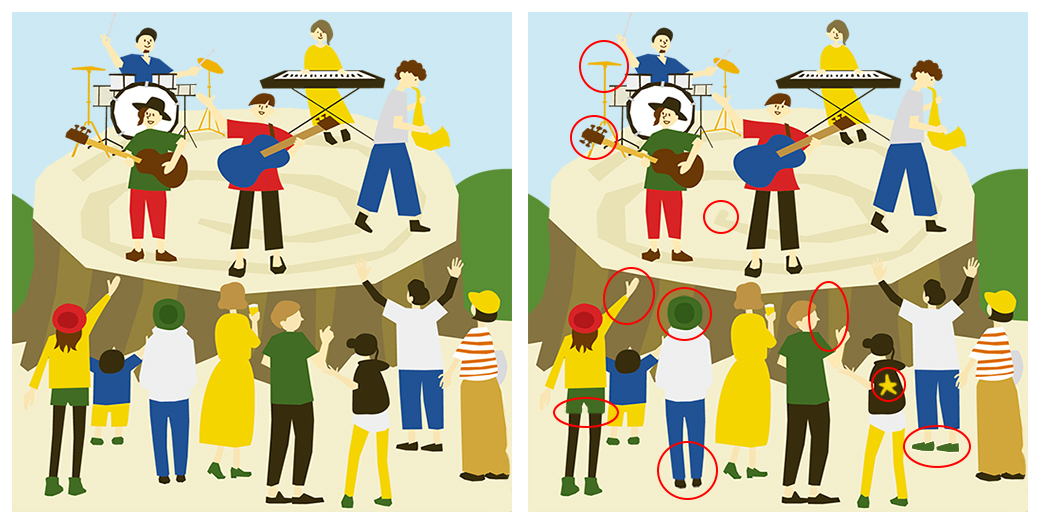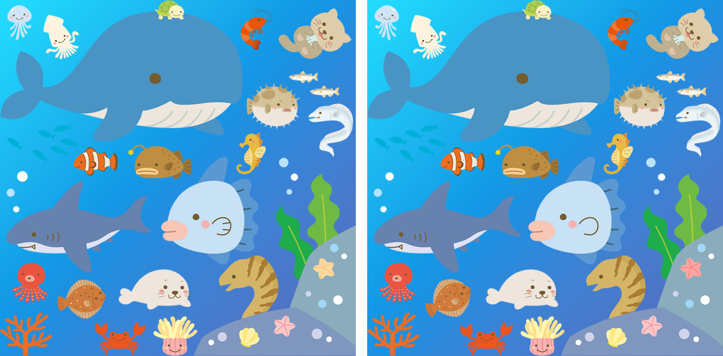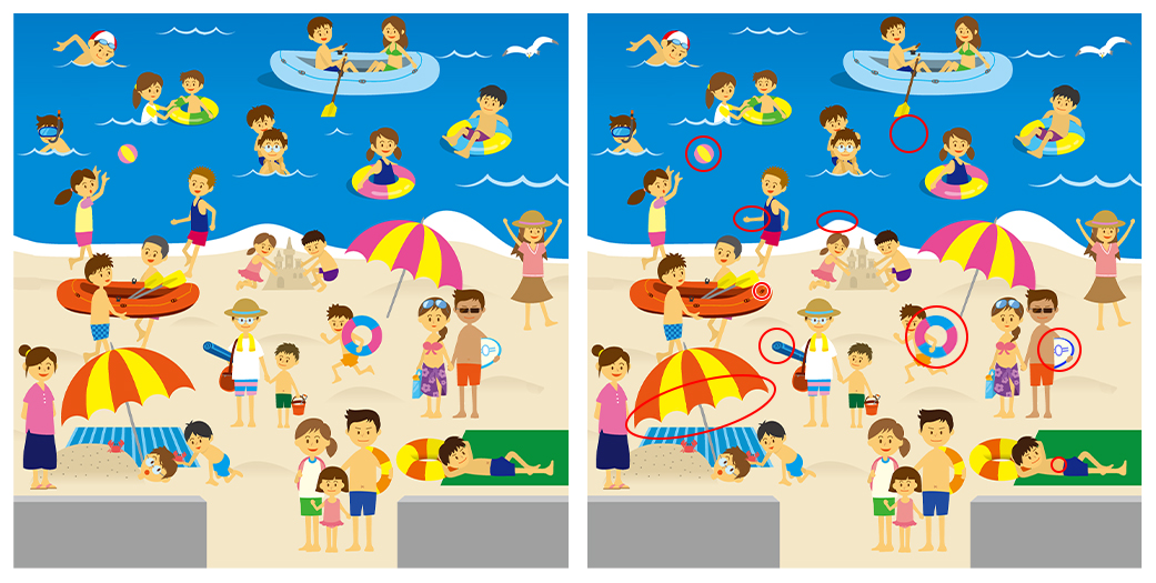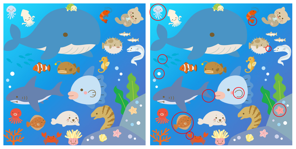 同じに見える2枚の絵の中から違いを探す間違い探し。
