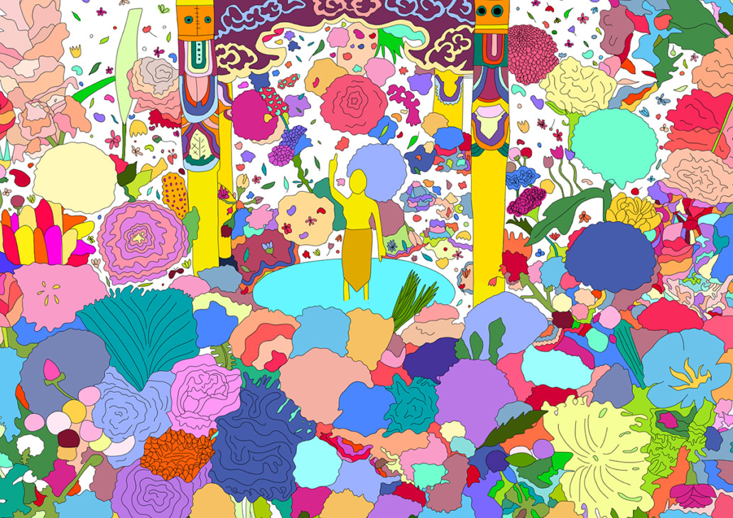 この日は『花御堂』と呼ばれるたくさんのお花で飾られた特別な御堂に入ったお釈迦様の彫像が見られます。彫像は、少し前に話した『天上天下 唯我独尊』と右手を上に左手を下にして天と地を指さしつぶやいた場面を再現しています。