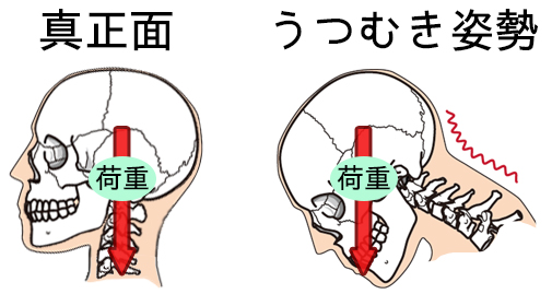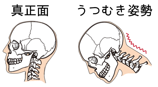 しかし、うつむいたり、前傾姿勢をとると自然と頭部は肩よりも前に突き出します。