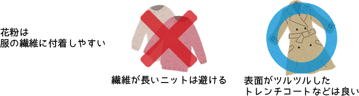 服の素材には、花粉が付着しやすいものがあります。