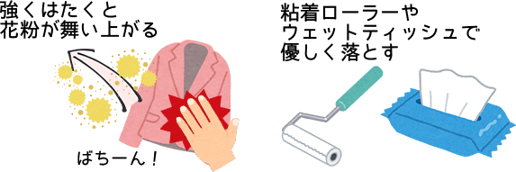 なので、外出中に体中に付着した花粉は玄関口で落とすようにします。