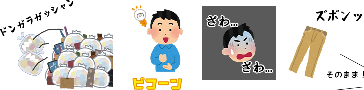 作品名は伏せますが、物が落ちた時の「ドンガラガッシャン」、何かを閃いた時の「ピコーン」、動揺や緊張感を表す「ざわ…ざわ…」、ズボンを履くときの「ズボンッ」と自由度が高いのも魅力的です。