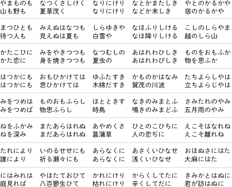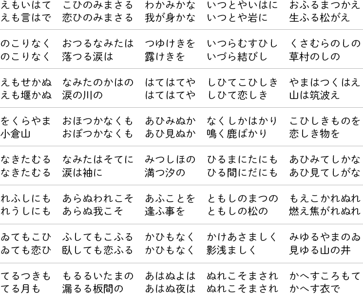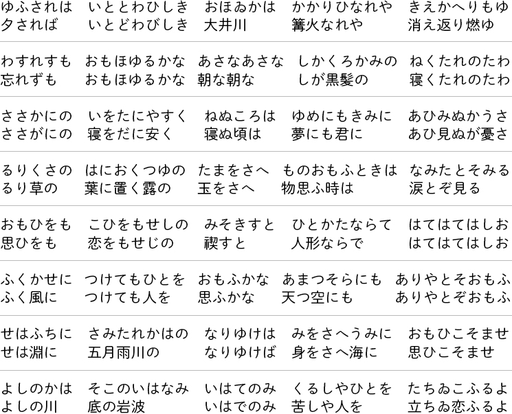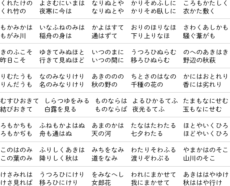 どちらも古く由緒を持っていることと「さくやこのはな」や「やま」など同じ句を繰り返し書くことで覚えやすいという利点がありました。
