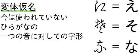 かつては仮名には複数の形があり、今は使われていない仮名を『変体仮名(へんたいがな)』といいます。