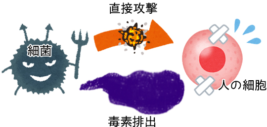 悪影響を及ぼす細菌は体内で増殖し人の細胞に攻撃を仕掛けたり、毒素を出して細胞を傷つけることにより症状が現れます。