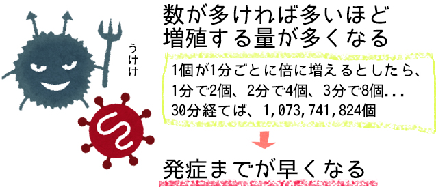 さらに細菌やウイルスが増殖するスピードは私たちが考えているよりもずっと早く、数分で何倍にも増えます。