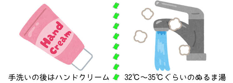 また、お湯で手を洗うと手を保護してくれる皮脂が水よりも多く流れていってしまうため手荒れがしやすくなります。
