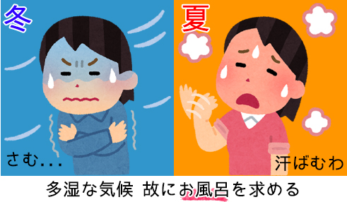 このような風土が年間を通して入浴が好まれる理由になったといわれています。