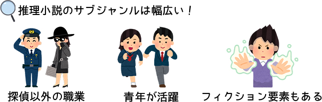 推理小説もテーマによってさらに細かくジャンル分けされます。