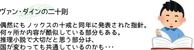 本日は推理小説のトリックにまつわるルールをご紹介します。