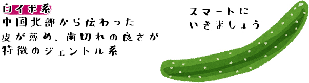 黒イボ系に比べて皮が薄く歯切れが良いのが特徴です。