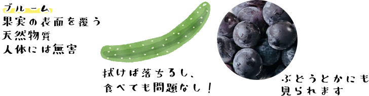 様々な果実から分泌されていますが、ぶどうやりんご、ブルーベリーなどは目で確認しやすいです。