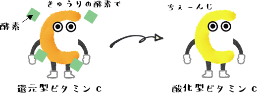 これは正式には「きゅうりの酵素によって『還元型ビタミンC』が『酸化型ビタミンC』に変異される」というものです。