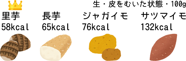 「いも」と聞くと全体的にカロリーが高いイメージですが、実はいも類の中で最も低カロリーなのが里芋です。