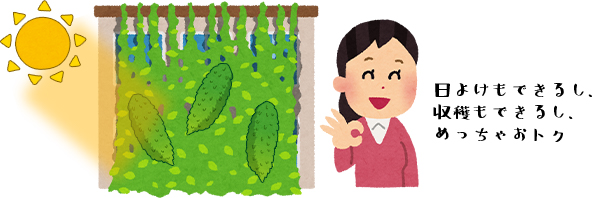 食べる野菜としても有名ですが、最近注目されているのはゴーヤーを育てて日差しを遮るカーテンを作る「グリーンカーテン」。