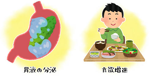 この成分は胃液の分泌を促進して保護をしたり、食欲を増進させたりする効果があるそうです。