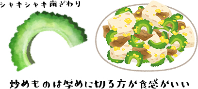 チャンプルーなどの炒め料理は、過度に火が通りにくいのでゴーヤーの栄養を摂るにはピッタリです。