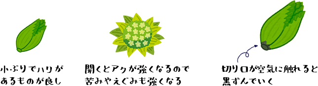 そのため小ぶりで締りが良くハリがあり、つぼみが閉じているものを選ぶと程よい苦みがあり美味しいです。