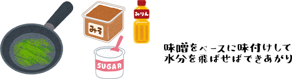 細かく刻んだふきのとうを油で炒め、味噌・砂糖・みりんなどで味付けして水分を飛ばします。