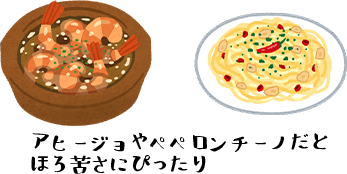 少し洋風にアヒージョや、ペペロンチーノなどのオイル系のパスタの具材としてもおすすめです。