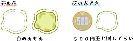 また、芯の切り口は小さくて白い方が、成長しすぎておらず丁度良いです。