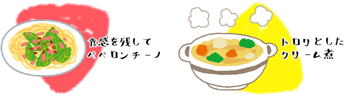 調理の最後の方に加えて、栄養と食感を損なわないようにしましょう。