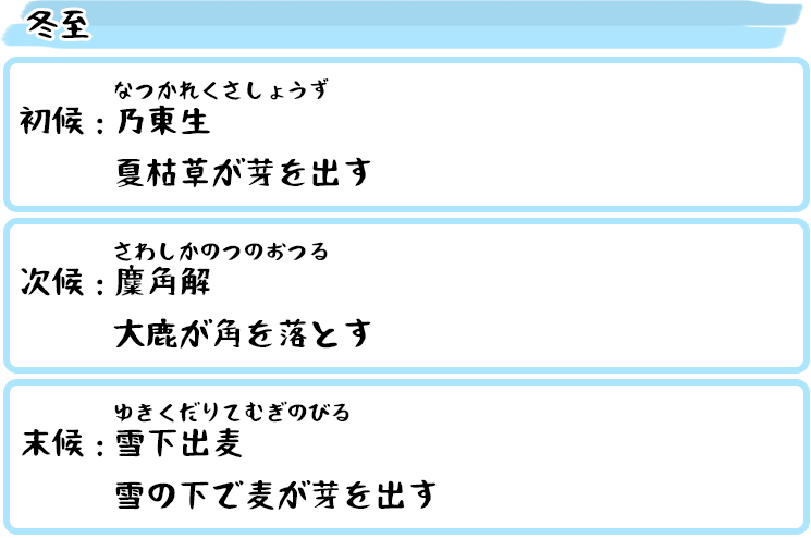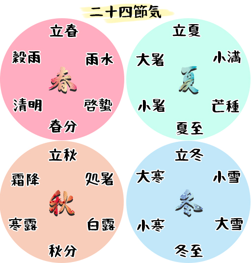 以前旧暦で季節を表す名称「二十四節気(にじゅうしせっき)」をご紹介しました。