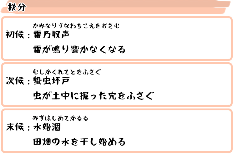 出典:大学共同利用機関法人 自然科学研究機構 国立天文台 暦計算室 暦Wiki 七十二候(https://eco.mtk.nao.ac.jp/koyomi/wiki/B5A8C0E12FBCB7BDBDC6F3B8F5.html)