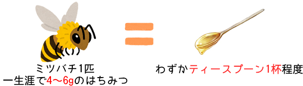 身体の小さなミツバチは2週間ほど収集係として花の蜜を集めますが、その一生涯で作れるはちみつはわずか4~6gとティースプーン1杯程度。
