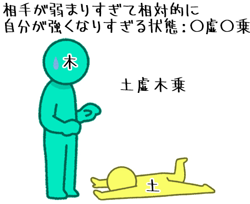 | 木虚土侮(もっきょどぶ) | 土虚水侮(どきょすいぶ) |
