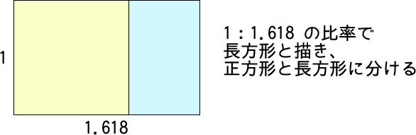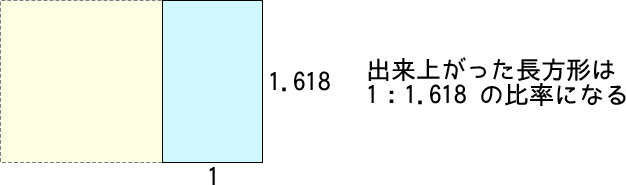 この長方形は、元の長方形と同じ1:1.618の比率になっているのです。