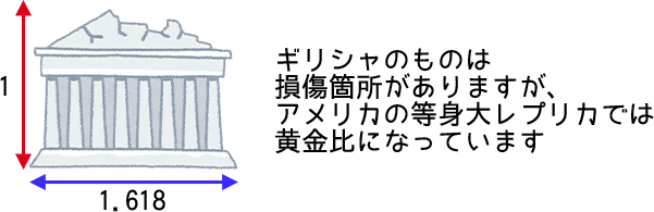 正面からみた高さと幅が黄金比になっています。