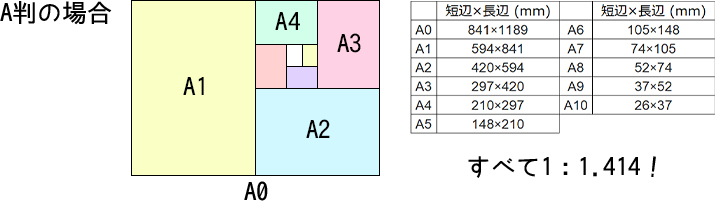 そのため、全てのA判・B判の要旨は1:1.414の比率になります。