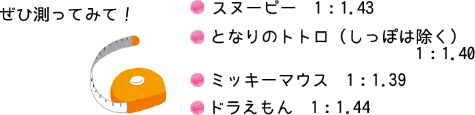 これらのキャラクターの代表的なポーズで見てみると、およそ1:1.414になっているのが殆どです。