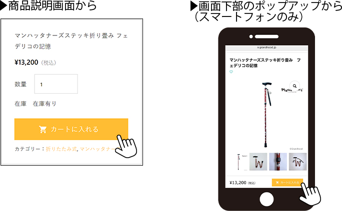 ウィッシュリストに登録した商品の「カートに入れる」ボタンをクリックすると、カートに入れてご注文対象に登録します。