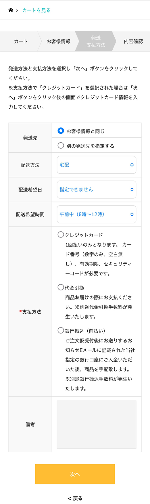 - ④発送・支払方法の選択
