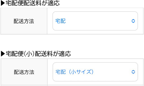 ご注文いただく商品の大きさにより「宅配」または「宅配(小サイズ)」が選択されます。