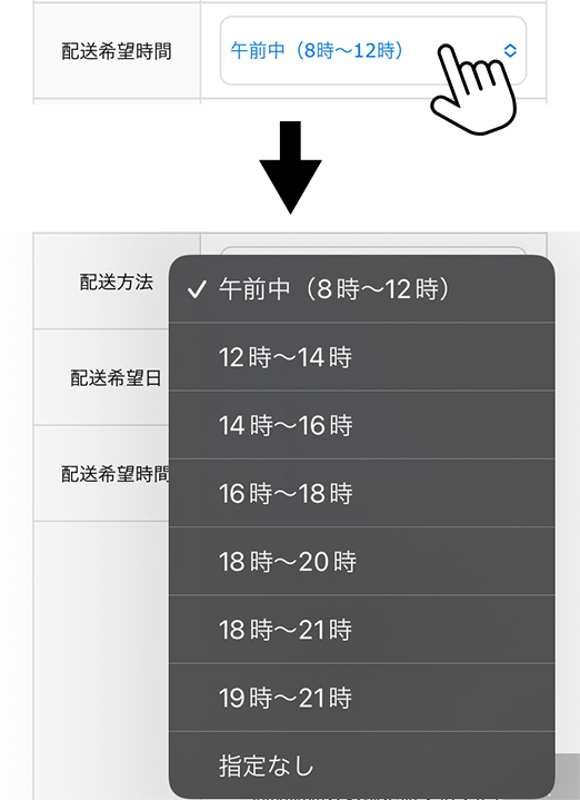 配送希望時間を指定します。