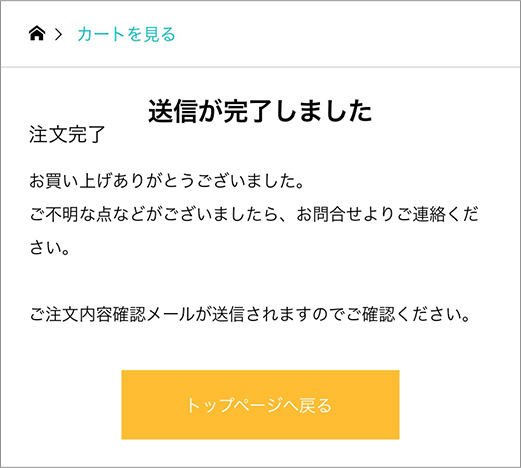 ⑥『注文完了』画面が表示されましたら、ご注文は完了です。