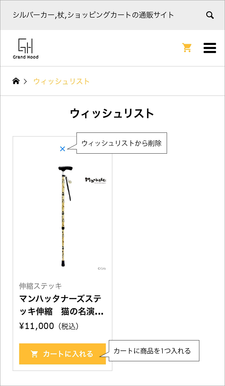 「×」をクリックすると、ウィッシュリストから削除されます。